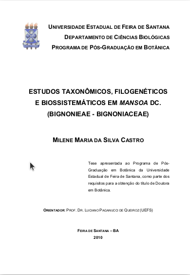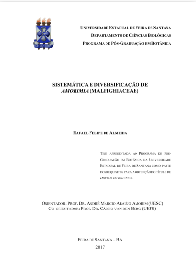 Thesis and dissertations produced using the Laboratory of Molecular Plant Systematics (LAMOL/UEFS)
