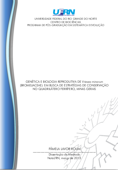 Pâmela Lavor Rolim. 2013. Genética e biologia reprodutiva de Vriesea minarum (Bromeliaceae): em busca de estratégias de conservação no Quadrilátero Ferrífero, Minas Gerais
