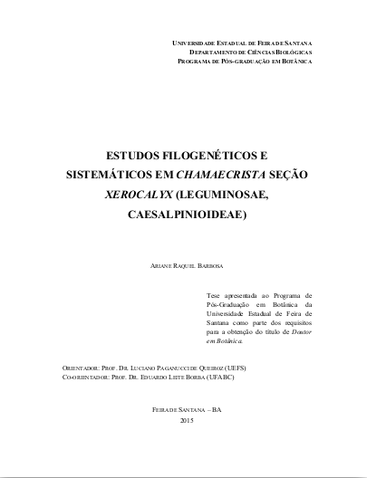 Wallace Messias Barbosa São-Mateus. 2018. Filogenia molecular e tempo de divergência em Harpalyce (Leguminosae, Papilionoideae) e sinopse taxonômica da sect. Brasilianae